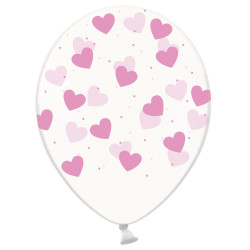 Повітряна кулька (B105, 30 см), НЕОН рожеві серця на прозорому 25 шт. 5 ст. арт. 258-0015