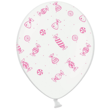 Повітряна кулька (B105, 30 см), рожеві цукерки на білому 25 шт. 5 ст. арт. 258-0065